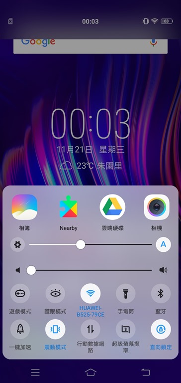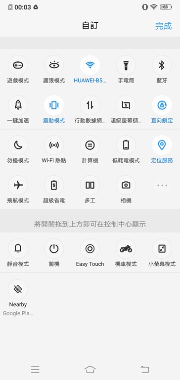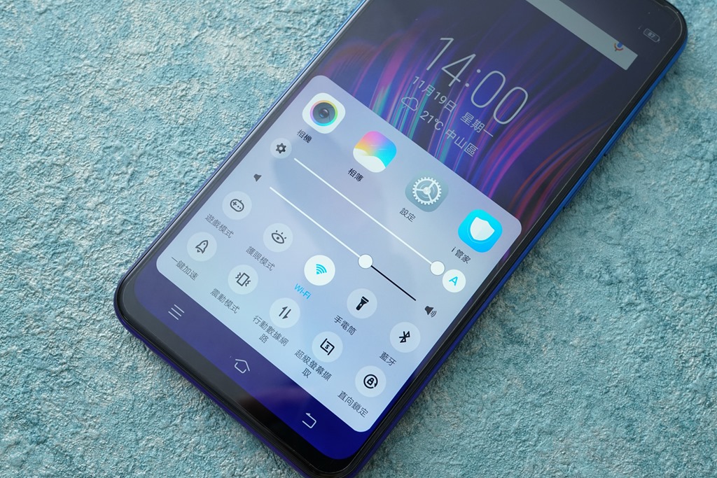 其他軟體方面則有幾項功能特別值得介紹,Vivo V11 的控制中心不像一般 Android 手機是從手機頂端往下拉,而是從下往上拉,單手拿著的時候可以用一隻指頭就喚出控制列,調整 Wi-Fi、直向鎖定或是一鍵加速功能等等,從設定裡也可以自訂有哪些選項要出現在控制中心裡,以及這些功能的排列方式等等。