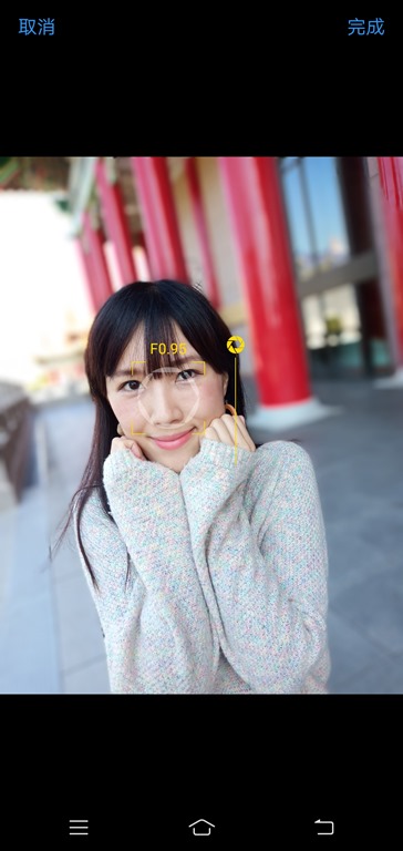 調整光圈數值也可以調整背景的模糊程度,從 F0.95 到 F4 都有不錯的模擬景深表現。