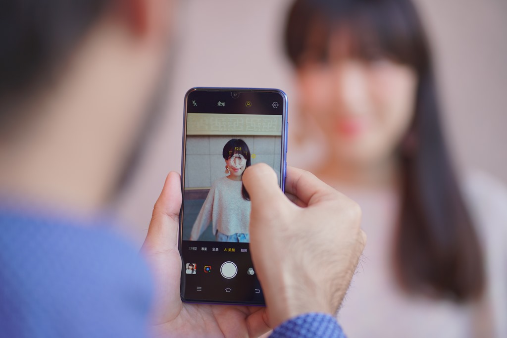 Vivo V11 有一項非常特殊的功能,叫做「AI 人像構圖」,打開拍照 app 之後點選畫面右上角的設定就可以啟用人像構圖功能,接著使用者只要將相機對準想拍的人,AI 就會教你該怎麼移動手機讓畫面呈現最好看的構圖,並且在完成構圖後自動啟動快門倒數三秒拍照。對於時常不知道該怎麼拍比較好看,或是不知道該如何構圖人來說,就是一項實用的功能。