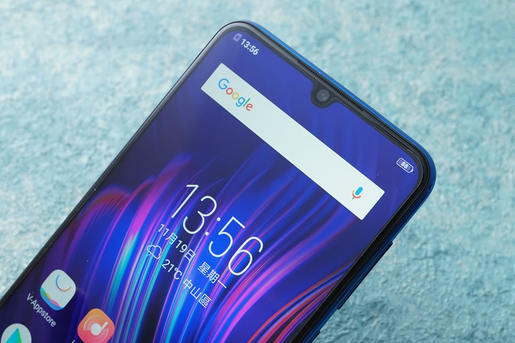 *2500 萬畫素的前鏡頭採用水滴狀設計,使得螢幕占比超過 90%。