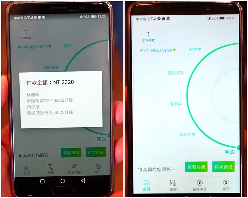 ▼最後還會有詳細的資訊,包含清潔時數、金額等,讓人一目了然!如果想要再次預約或是查看上次的詳情資訊都沒問題!