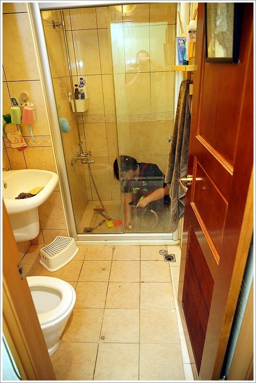 ▼登愣~整個乾濕分離的玻璃竟然乾淨到會發光,另外牆面、地面及水龍頭都刷洗得清潔溜溜,相信小朋友在這裡洗澡也會洗的很開心吧!