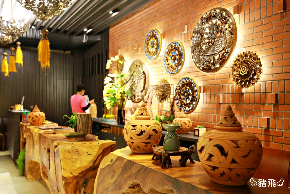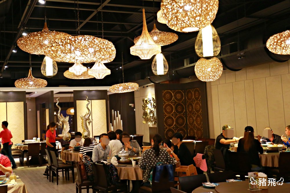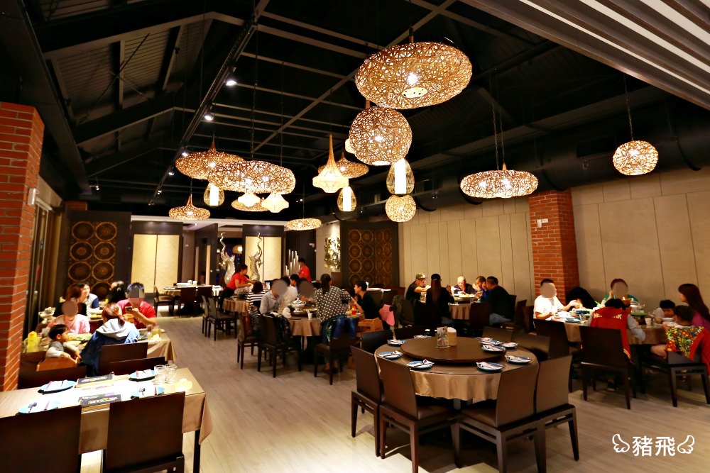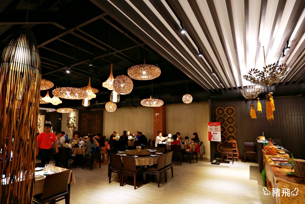 室內設計跟戶外風格大不同,天花板高掛設計吊燈、空間裡點綴金屬藝術裝置,注入精工的奢華,享受寬敞舒適的南洋風情,豬飛身邊的外地朋友都說:只有台中才有這樣一家比一家還誇張的餐廳! 再次證明不誇張真的存活不下去咩!