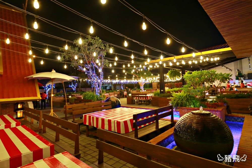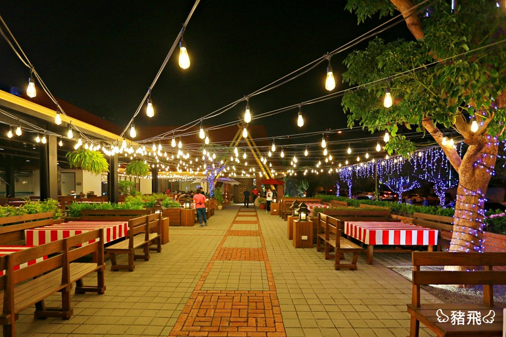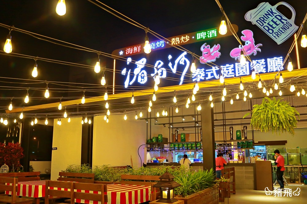台中又有一家新開幕夢幻IG打卡點!夜間搖身一變成為網美聚集地!其實這裡是泰式料理啤酒廣場喔!豬飛超愛吃泰式料理,酸酸辣辣特別開胃,台中最近就新開一家佔地超廣的大型泰式餐廳「湄南河泰式料理庭園餐廳」,位在南屯重劃區龍富路上,附近有知名的龍富夜市、旌旗教會和台中最美芭蕾城市渡假旅店,雖然甫開幕2個多月,已經吸引不少人前來,我來的這天是週六晚上,從裡到外都是客滿狀態,還好有先訂位不然就要現場候位了。湄南河泰式料理在台中有多家分店,超過十年的台中在地品牌,餐點融合泰國北部清邁、東北部伊桑、中部曼谷、南部合艾四區特色佳餚,除了平價庶民小吃,也融入高檔宮廷料理。