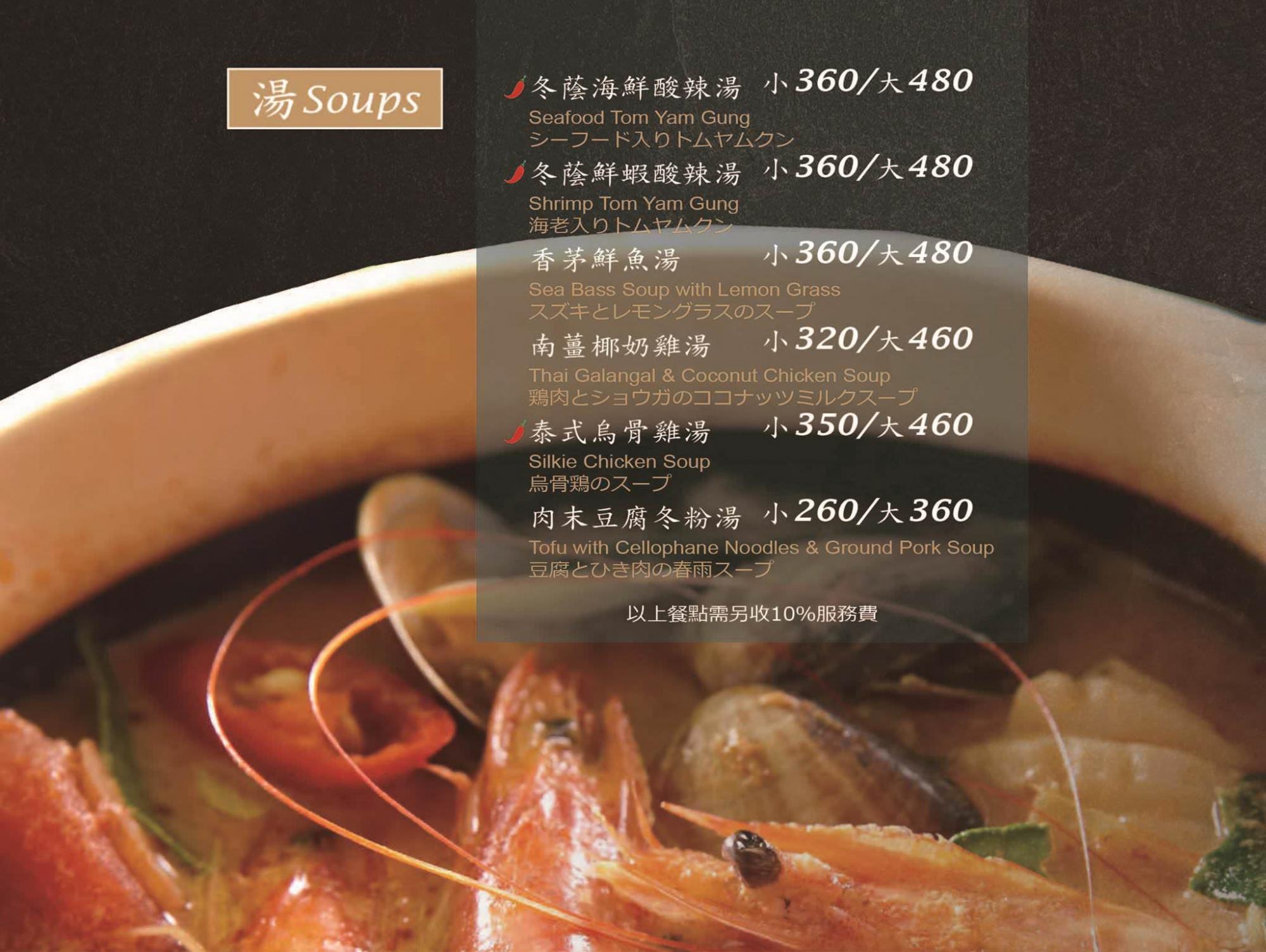 醬料與香辛料相互搭配層次分明,採用南薑、香茅、魚露、羅望子、辣椒等熬出酸辣的湯底,大量香料讓湯頭豐富多變,喝的時候又酸又辣直衝腦門,喜歡吃海鮮的朋友很推薦海鮮料豐富的冬蔭海鮮酸辣湯。