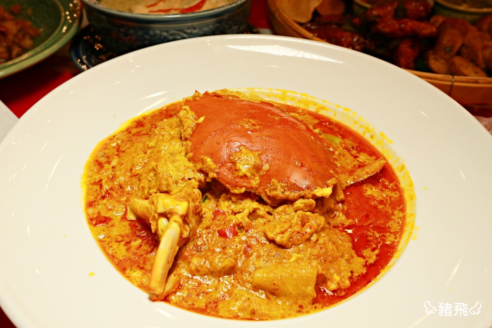 選用泰國咖哩粉、黃薑粉、乾辣椒,搭配出獨家黃金比例,香氣奔放,才一上桌就忍不住抓起紅蟳吸吮!金黃色蛋液混合微辣咖哩,與碩大肥美新鮮紅蟳快速拌炒,紅蟳肉質鮮甜細嫩越吃越涮嘴,剩下的醬汁用麵包沾著吃肯定美味極了。