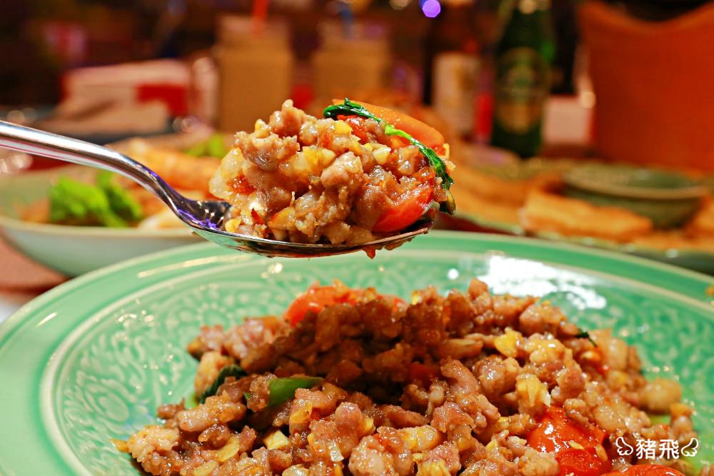 這道是許多人吃泰式料理一定要點的代表菜,鹹香夠味的打拋豬肉很下飯!記得點上白飯多吃幾碗。瘦肉肥肉比例很剛好,加了魚露、檸檬汁、辣椒、小番茄拌炒,濃郁滋味也很適合搭啤酒。
