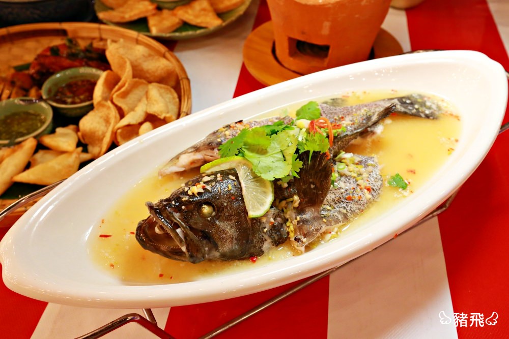 通常檸檬魚都是以鱸魚為主,這裡推出三種選擇:鱸魚、鱈魚、石斑魚。我選了現流急速冷凍送到店的新鮮石斑魚,肉質鮮嫩厚實少刺無腥味,魚皮膠質豐富,吃的時候一定要淋上底下酸甜開胃泰式檸檬醬汁。