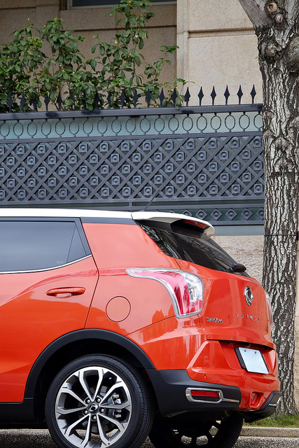 SSANGYONG TIVOLI 外觀其實頗有歐洲車的風格,雙色的前保桿搭配鍍鉻飾條還帶有一點跑格。