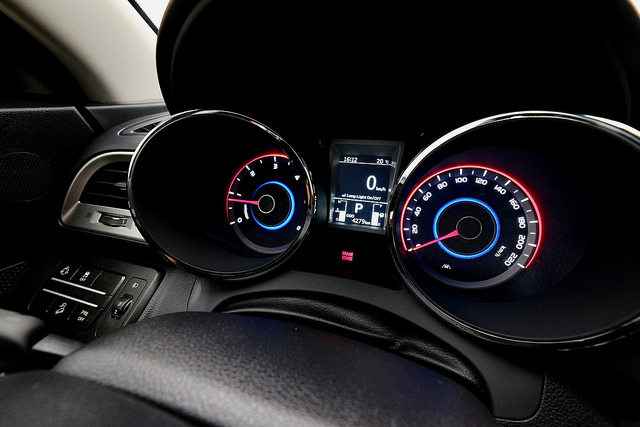 SSANGYONG TIVOLI 的雙環式儀表板有 6 色背光源可調整,設計也是很有跑格,中間還有塊 3.5 吋 LCD 旅程資訊顯示幕,可顯示時速、胎壓、油耗等行車資訊。