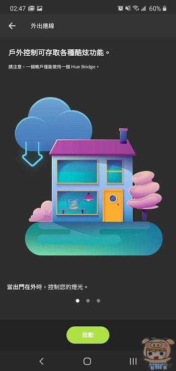 如果還有另外購買 Philips Hue 其他配件,例如調光遙控器、人體感應器等,也是從 Hue App 去配對設定,配對完成後,就能開始體驗 Hue Bridge 帶來多達1600萬種以上的彩色燈光效果。