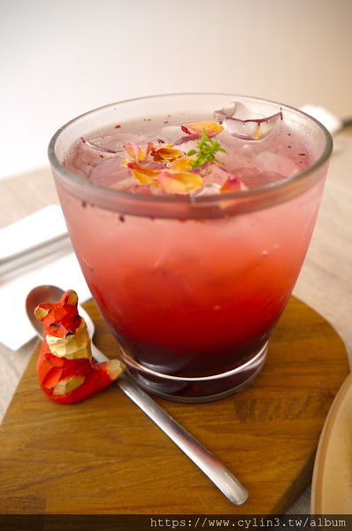 酸酸甜甜的「莓果氣泡飲」深獲不少女性朋友喜愛,在店員的推薦下,我們也來上一杯,紅色莓果漸層暈開,撒上些食用花瓣,讓人少女心大噴發,冰冰涼涼的氣泡飲超消暑滴;特別說一下~莓果醬是店家自己慢火熬煮的,沒有添加防腐劑,不會太甜膩喔~
