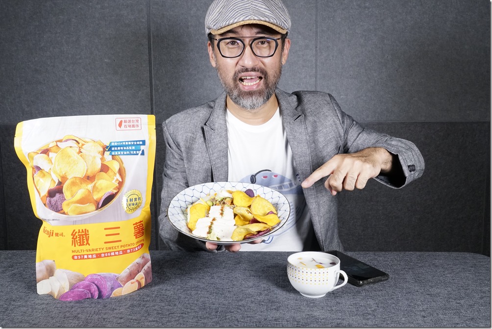 翻到背面,沒想到健司纖三薯還有出國拿到金牌,真的是台灣之光!使用在地的台 57 黃地瓜、台 66 橘地瓜、台 73 紫地瓜,原來是番薯啊!平常也會偶爾吃個冰鎮的地瓜當成正餐,因為他除了有著膳食纖維外,還有著抗性澱粉,比起一般澱粉不易吸收與消化,而且還能產生飽足感,而且升糖指數也更低,這時候罪惡感幾乎已經快消失。