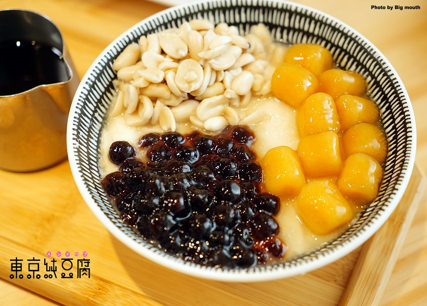 ▼鹽鹵日式豆花,這道也是每桌必點的飯後甜點,可以自選三種配料,一旁附有黑糖水,大家可以視個人喜愛自由添加!
