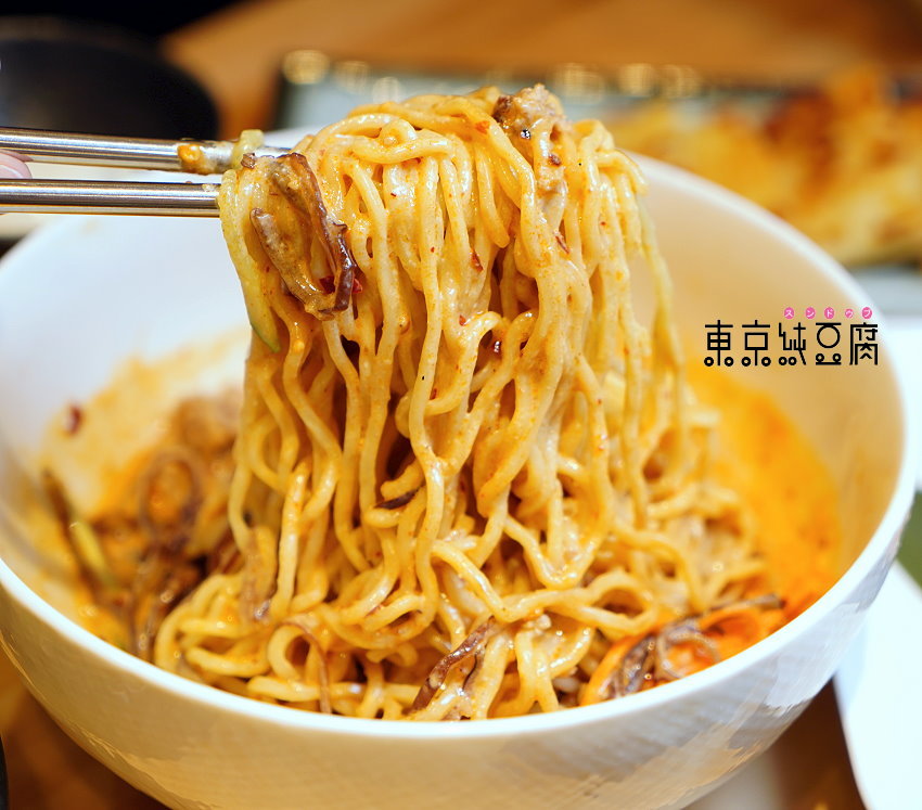 ▼椒麻豆乳担担麵,麵條上頭有四種配料,再搭配特調的椒麻豆乳醬,記得先攪拌後再享用~~