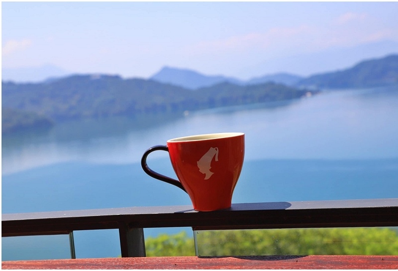 ▲日月潭湖畔悠哉享用早餐,很多人都吃完了也不肯離去,喝杯咖啡慢慢地欣賞這片湖景吧。