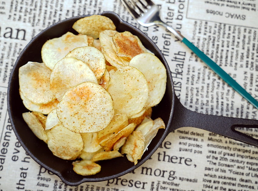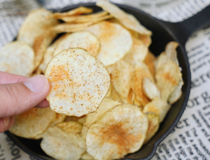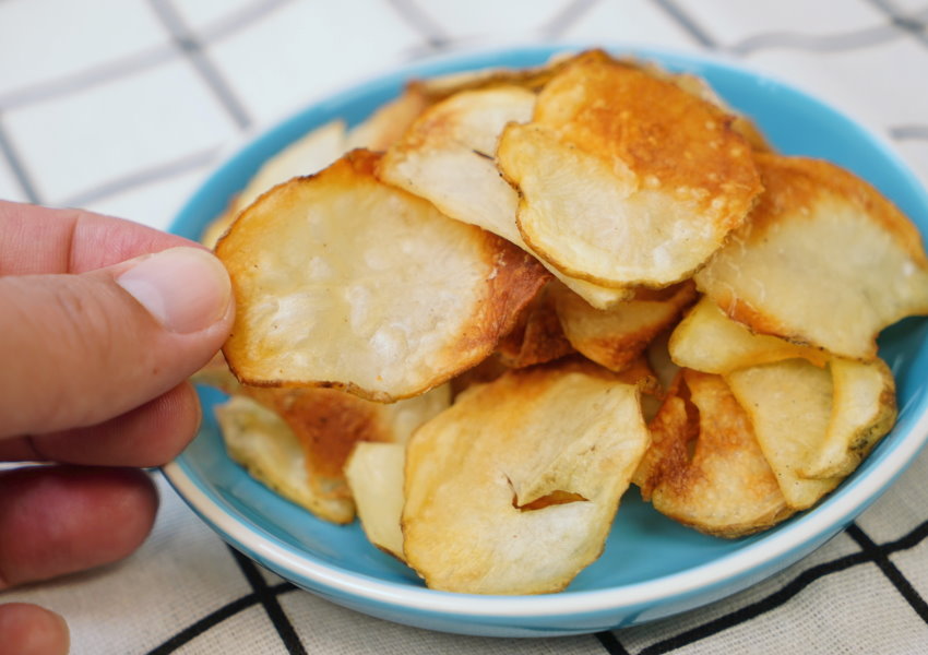 洋芋片可說是老少咸宜的零嘴,馬鈴薯料理在家也可以自己做!這次大口要分享的烤洋芋片做法,一共有三種,第一種是用平底鍋香煎,成功率最高,也是最快的方式,不過缺點就是比較油膩;第二種是微波,只要5分半即可,但沒有氣炸烤箱來得香;第三種是用氣炸鍋(氣炸烤箱)做法,所需時間比較長,但吃起來香氣更足,而且不油不膩,給小朋友吃也很安心!以上三種方式都很簡單快速,吃起來也很酥脆可口,趕快跟著看下去吧~~