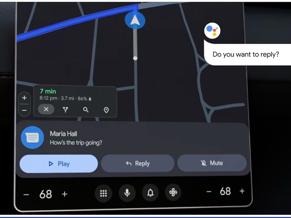 Google 也進一步介紹駕駛還能藉由汽車的螢幕來使用 Google 語音、Google 地圖、Google 瀏覽器以及下載所需要的 app,像是透過語音來回覆收到的訊息、設定車內的溫度等。