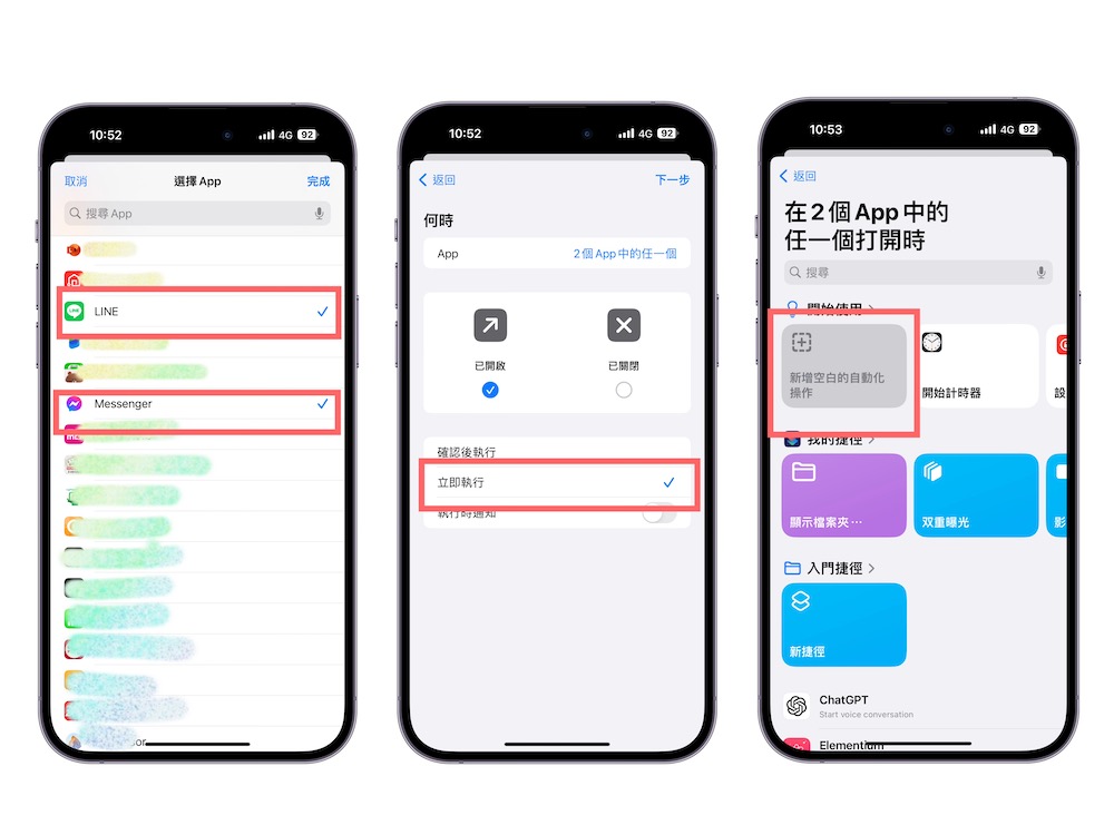 步驟 5、當我們選好想要鎖定的 app 後,就要開始做 “鎖定” 的動作。所以在這邊我們選擇「新增空白的自動化操作」。