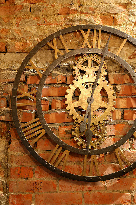 古銅色的鑄鐵時鐘,彷彿讓時間凝結在牆面上。