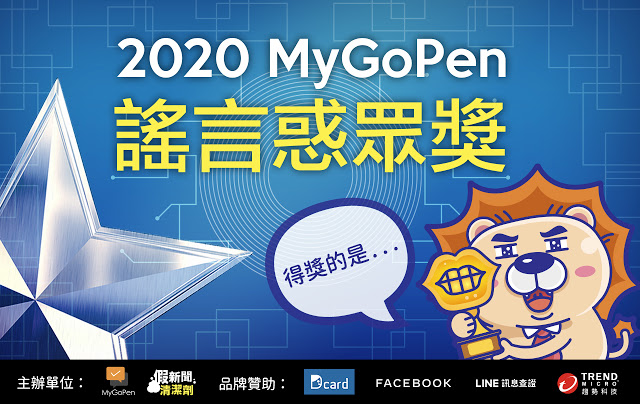 考驗。相當具有公信力的《MyGoPen》網路闢謠網站現在舉辦了第一屆謠言惑眾獎,獎項源自於《MyGoPen》在