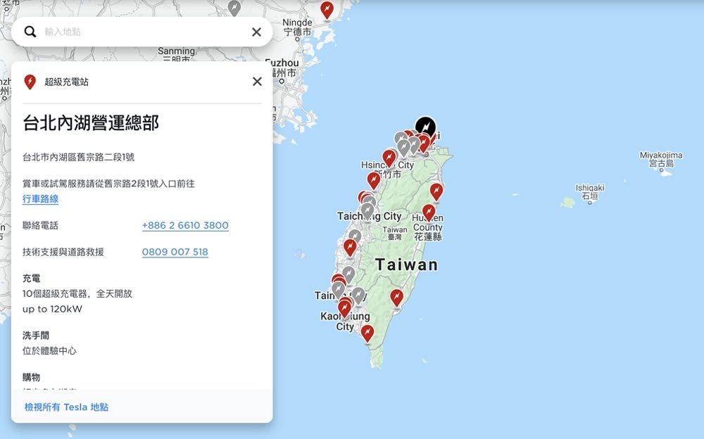 網路地圖,讓有興趣的朋友能夠直接從網路地圖上看到特斯拉現在所有的超級充電站位置、數量和預計開放日期!