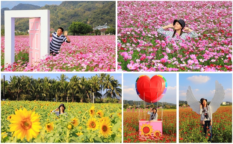 高雄美濃花海|愛在美濃花開時!波斯菊、向日葵及百日草等花海怒放!小叮噹任意門等十大裝置藝術好夢幻超好拍!一年一