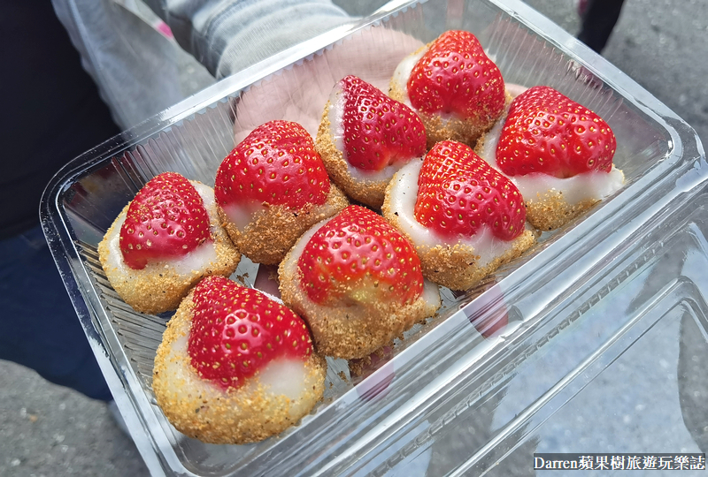 南機場草莓麻糬咬下去會爆汁只要銅板價!這家Q麻吉古早味麻糬推出季節限定的草莓麻糬,每天現做麻糬加上甜美草莓、紅
