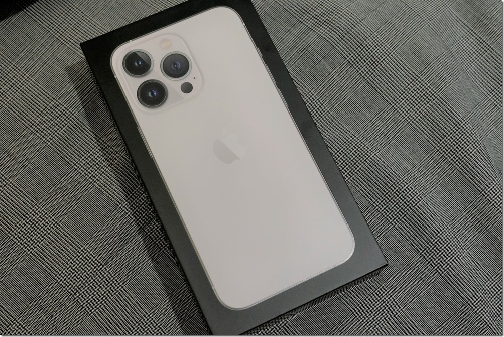 > iPhone 13 Pro 包裝維持與 iPhone 12 系列一樣,因為取消附贈充電頭與耳機,包裝非常扁