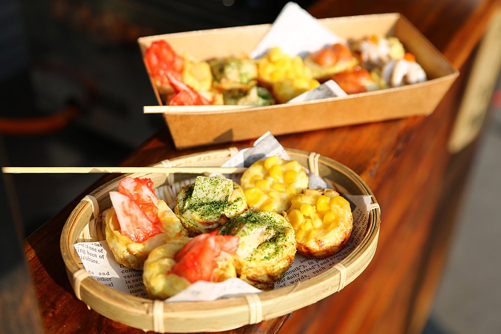 全台首創超爆料金黃丸子!用一層層蛋液包入小肉豆、章魚、蝦蛄、蟹肉腳,千變萬化的食材,口感軟嫩,造型超可愛! 「