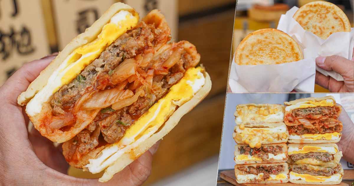 下午茶銅板美食,自強夜市美食吃不停,獨創特色滿福堡推薦 大戈雞蛋堡,位於木昂手作飲品前 文青小攤子、每日新鮮備