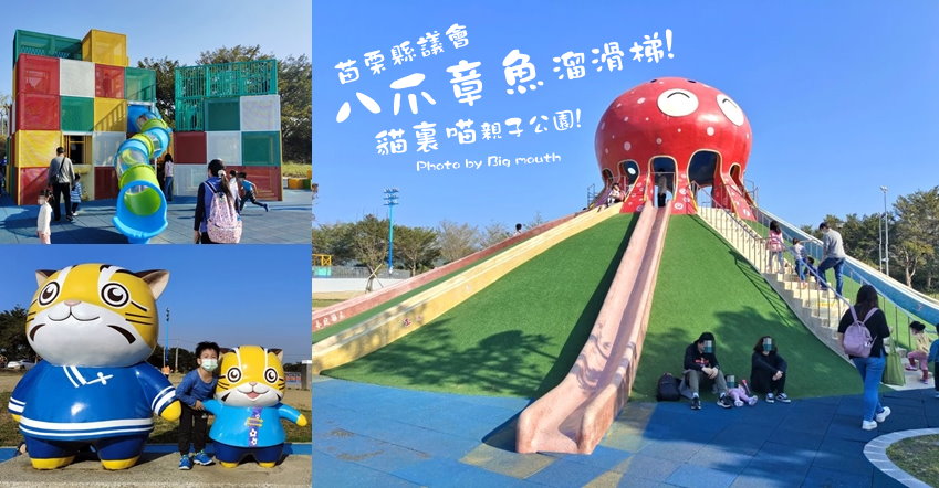 位於苗栗縣議會後方的「貓裏喵親子公園」是苗栗縣內第一座大型親子公園,最為吸睛的就是八爪章魚馬卡龍溜滑梯,一共有