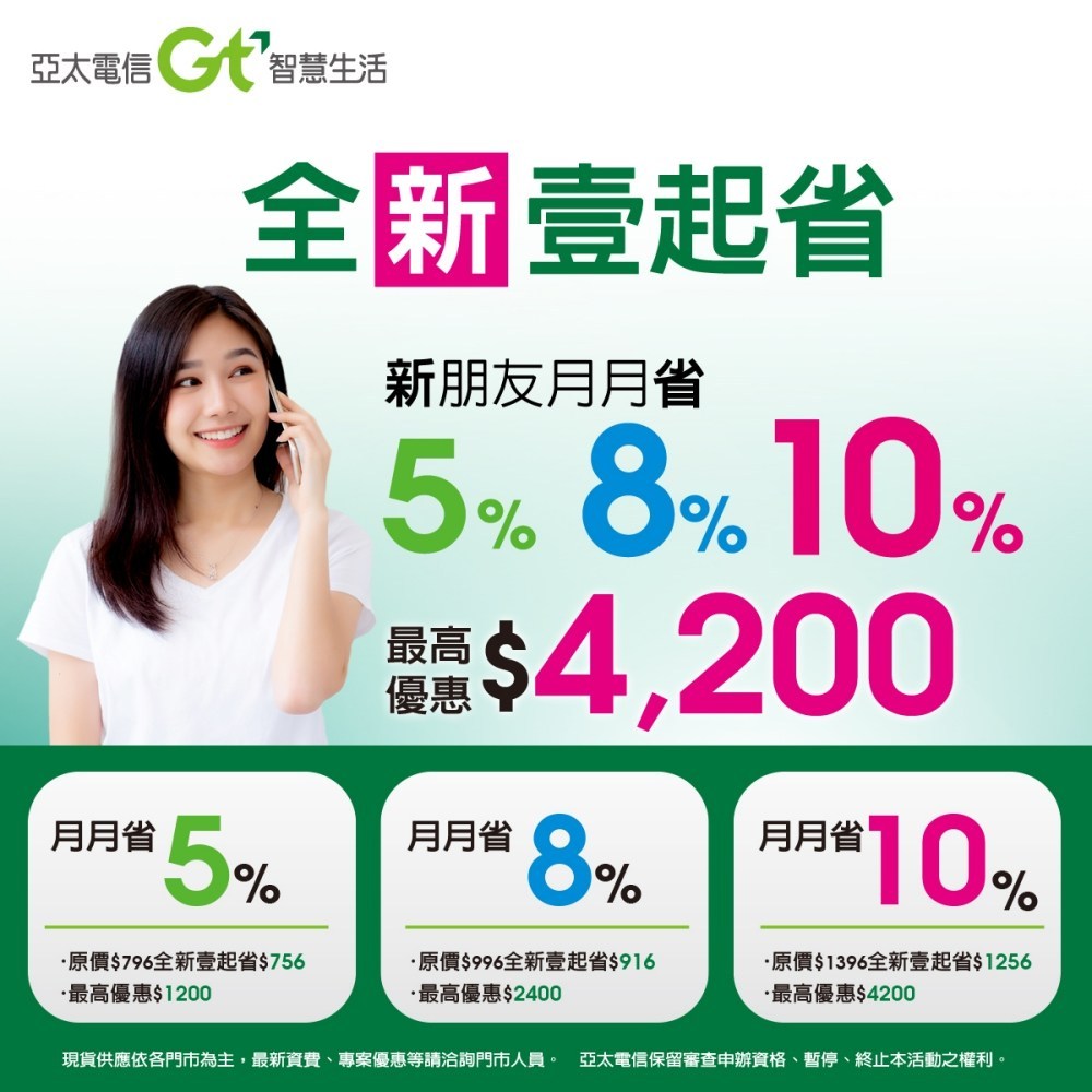 亞太電信「壹網打勁」系列資費,推出以來好評不斷,為了歡迎更多新朋友加入,亞太電信再推更猛優惠新促案~「全新壹起