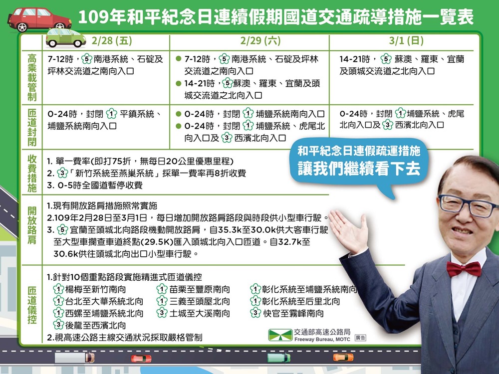 2020 二二八連續假期交通懶人包:高乘載管制、匝道封閉、開放路肩一覽