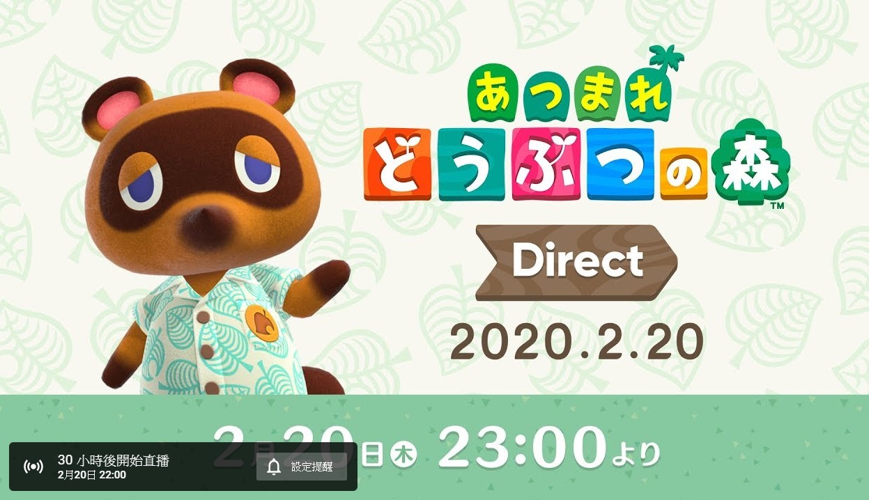 《集合啦!動物森友會》Nintendo Direct 將於 2 / 20 晚間 10 點進行直播