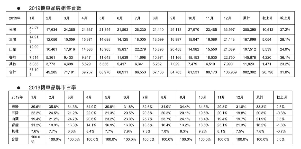 2019 年度機車掛牌冠軍由光陽奪下 柯俊斌:明年補助限縮、促銷是主因