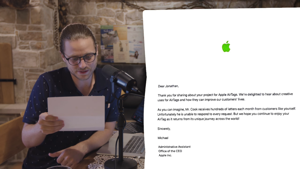 國外 YouTuber 將 AirTag 寄給庫克 結果收到蘋果總部的回信