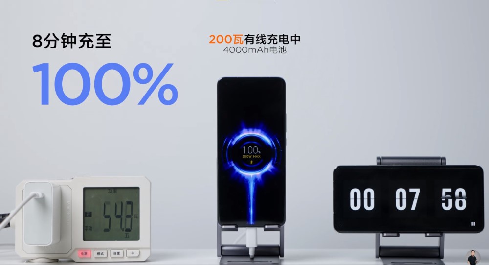 小米公布 200W 有線快充,8 分鐘充滿 4000mAh 電池