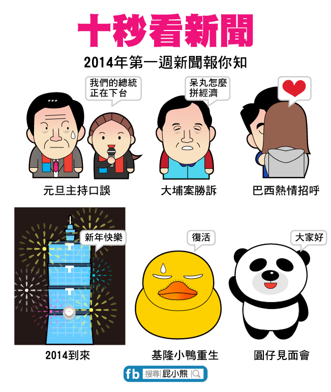 2014就這麼來了!第一週就有不少新鮮事新聞讓大家印象深刻!(總統正在下台到圓仔今天出關),希望2014是個多