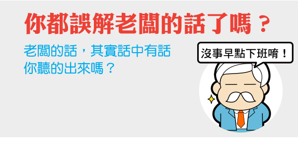 「沒事早點走」這一句話是不是時有所聞呢?常聽到老闆說這一句,但你真的就準備下班嗎?其實老闆說這一句話的背後還有