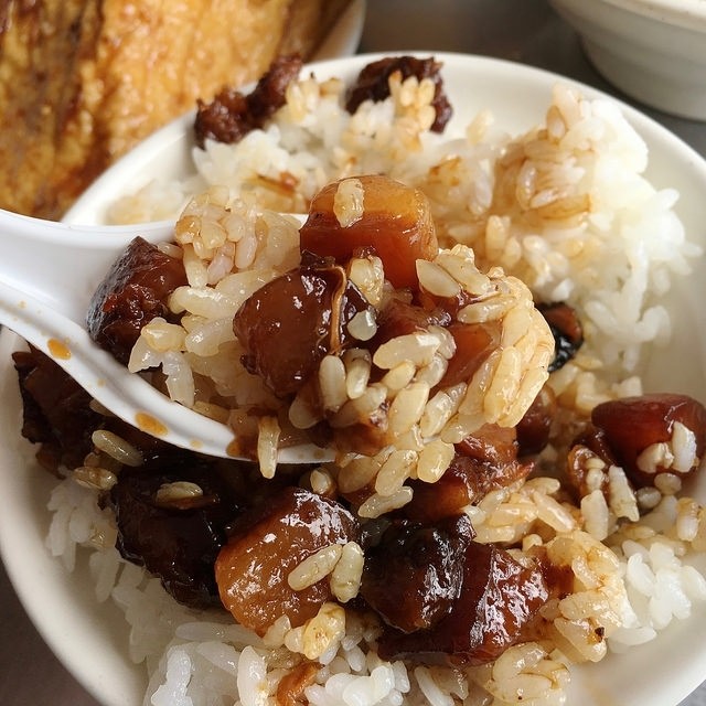 這是近期在台中我還蠻愛吃的一家滷肉飯,雖然它叫「肉角飯」,但本質上就是滷肉飯,雖然看起來很油很肥,但吃起來真的