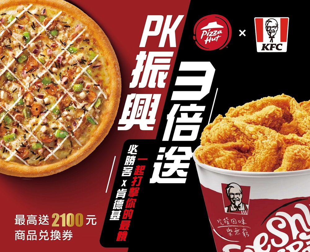 肯德基今日宣布將首度攜手必勝客推出超值3倍回饋PK振興方案,主打免預購!免綁定!只要在活動期間消費達指定金額,