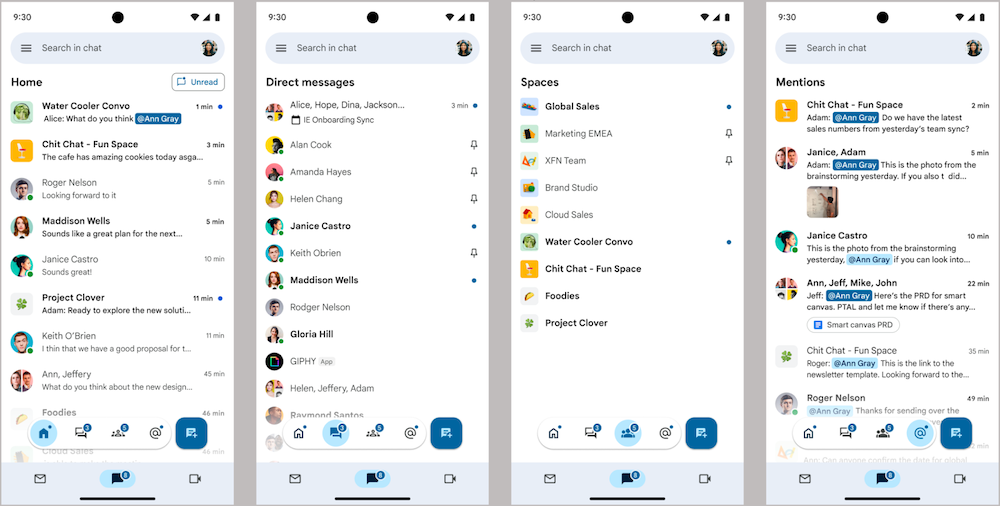 Google 宣布為 Android 和 iOS 用戶帶來 Google Chat 的新圖示設計,下方本來僅