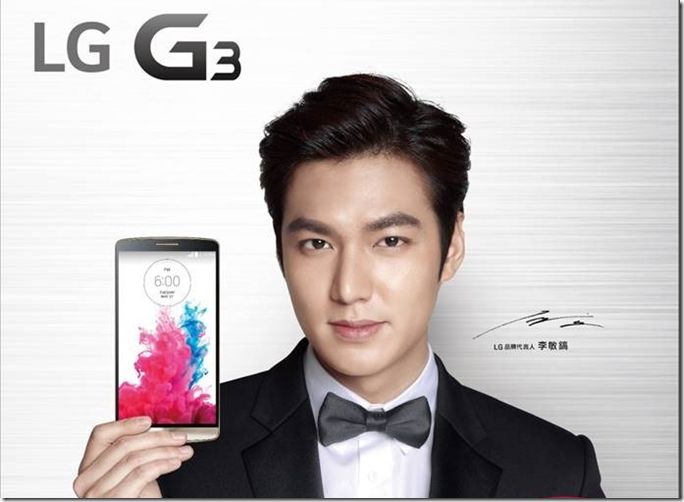 多虧了LG G2、G Pro2的大賣,因此LG趁勝追擊, 在G3直接找了繼承者金嘆-李敏皓歐巴來擔任LG大中華