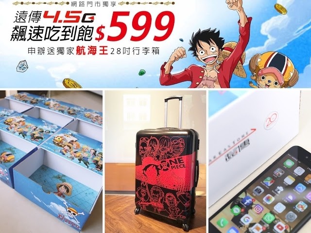 遠傳網路門市‧買就送航海王收納盒開箱:599飆速吃到飽加碼送航海王28吋行李箱(附 4.5G 上網速度測試)