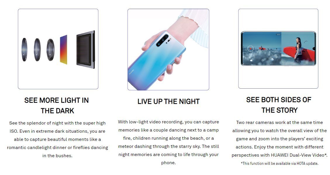 Huawei P30 系列在相機、效能跟外觀上都做了升級;像是看得更遠、在暗處看得更清楚的拍照能力,處理器更新