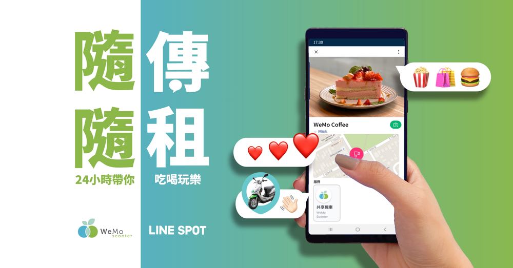 以手機「App 找租騎還」便利智慧車聯網技術,24 小時即時租借智慧機車服務 WeMo Scooter,今天